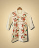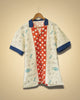“Mickey Ki Mogra” is a whimsical, head-turning hybrid. It combines the refined elegance of vintage embroidered lace with the bold joy of stamped Mickey Mouse medallions in red, orange, and green. This shirt playfully blurs timelines — from 1940s Lucknow to 1980s Disneyland to 2025 Lahore.