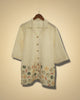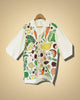 “Sketches & Dots” is a lighthearted escape into the sketchbooks of childhood — a world where polar bears go “jumping in joy”, “forest camping”, and tell you “chill out” when life gets too serious. The playful typography and illustrations are set against creamy panels and bold red polka dots, finished with a crisp navy Cuban collar and cuffs.