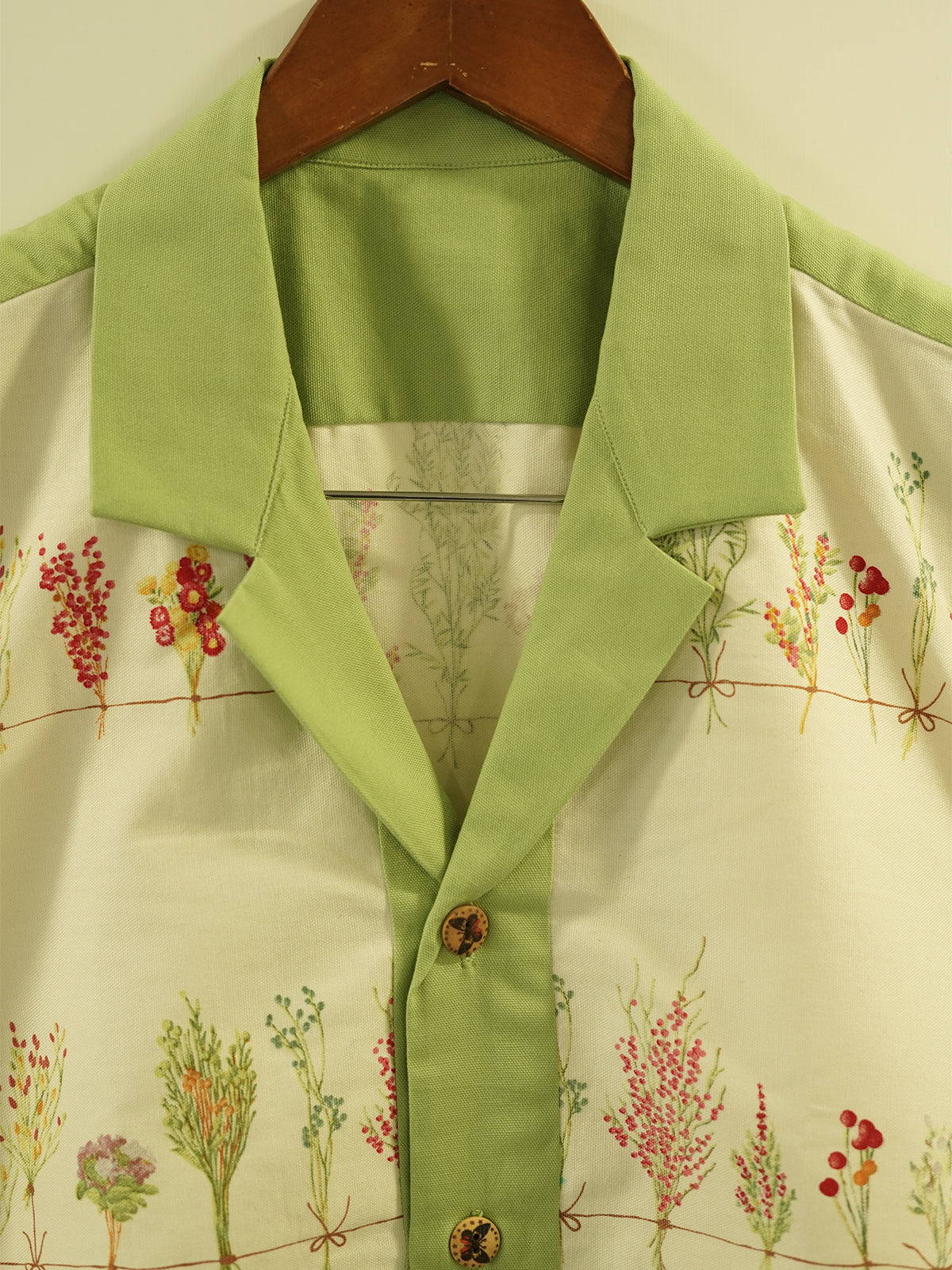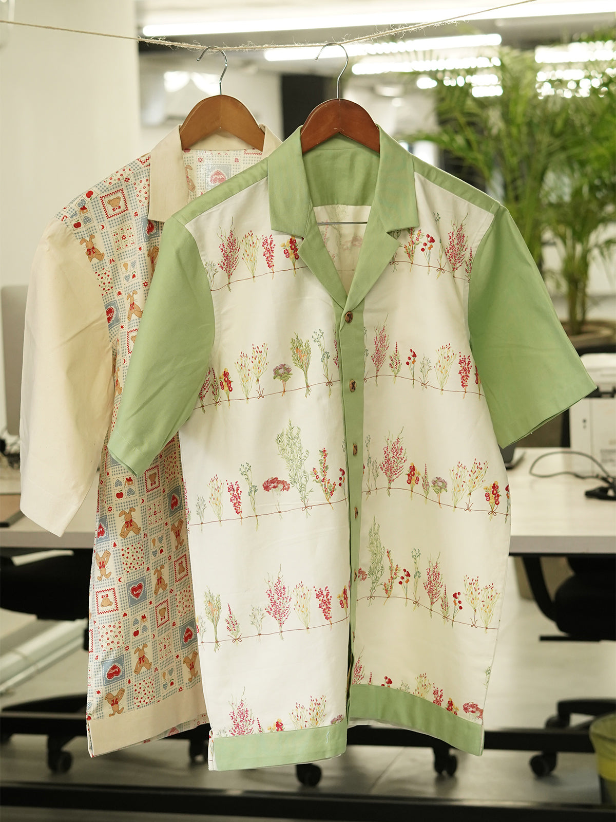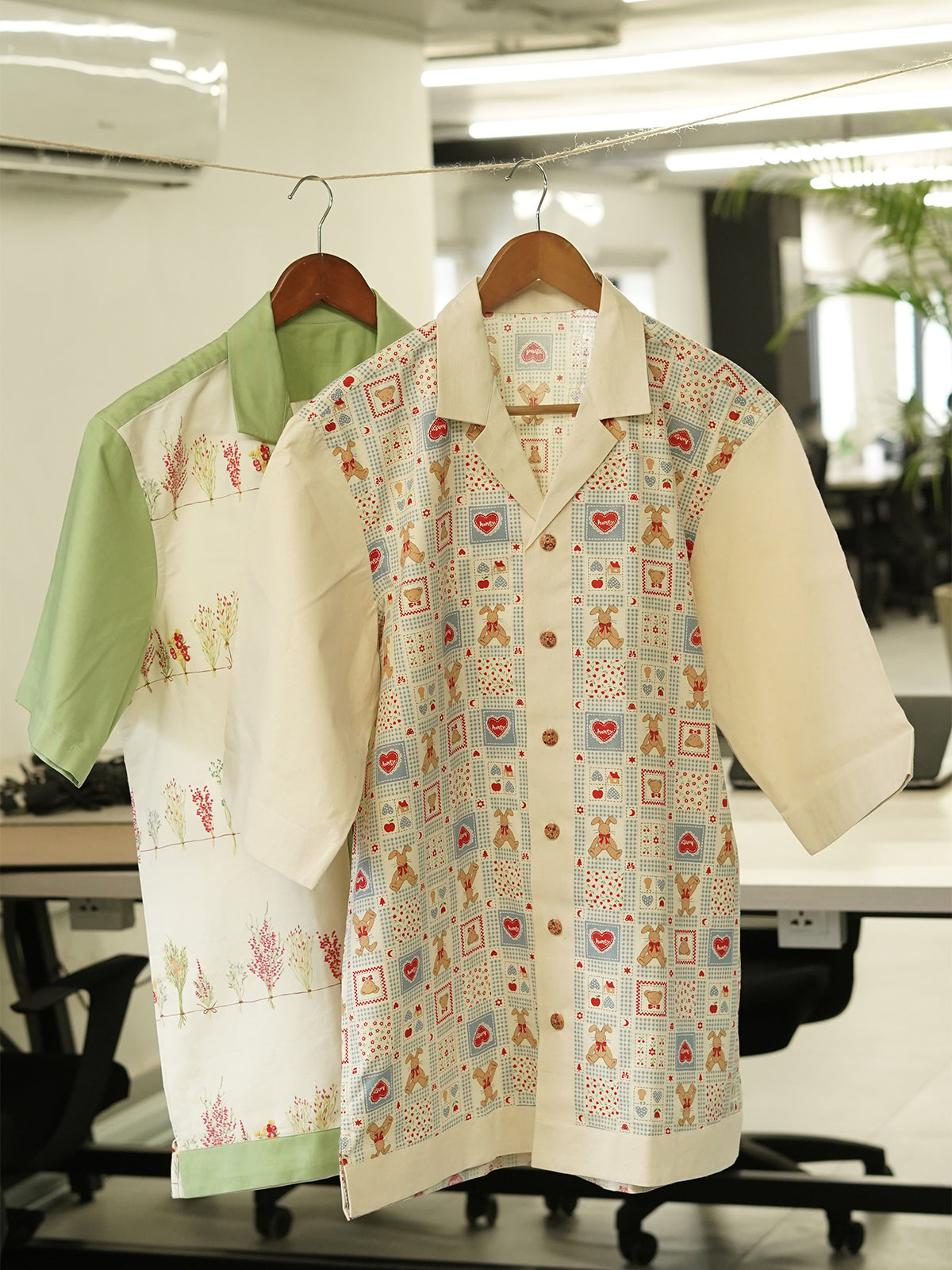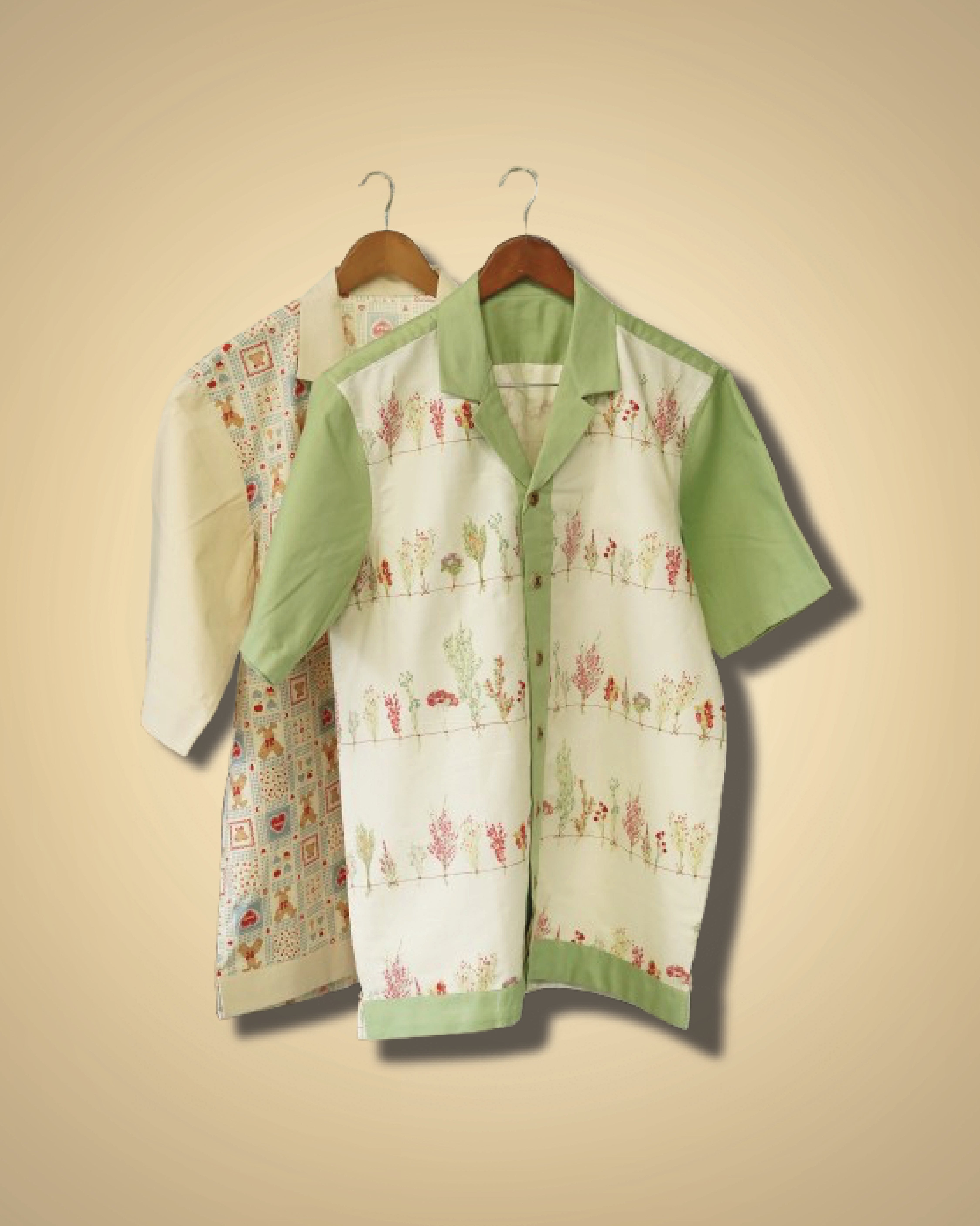 Stitched with sage sleeves and collar, this shirt captures the mood of monsoon chai, rooftop gardens, and letters that still carry your grandmother’s scent.