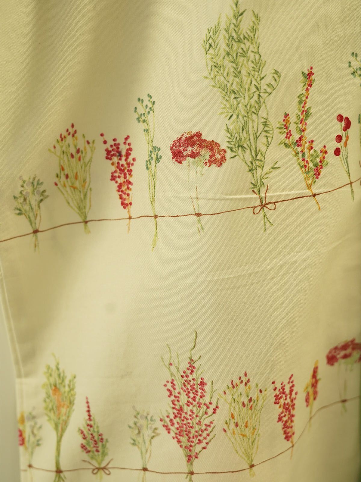 “Khushboo Baaki Hai” is crafted from a rare vintage fabric lined with delicate botanical sprigs — like pressed flowers pinned lovingly between diary pages. From herbal reds to garden greens, each motif feels like a page from a forgotten botanical sketchbook.